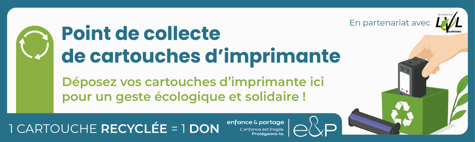 Pour agir sur celui-ci, la commune a établi un partenariat avec la société LVL pour faire collecter ses cartouches d’encre usagées auprès des agents et administrés, par des points de collecte dans les bâtiments communaux.